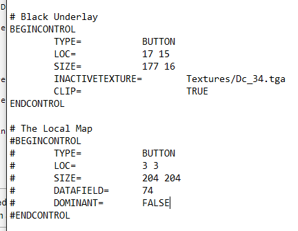 a) Right-click on HUD_Map.cfg and select "Edit" b) Copy the text and past into Notepad++ (The formatting can be funky and its easier to edit in Notepad++) c) Remove the following controls: