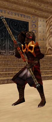 From the summit of Hragesh, the sorcerer Koss'thrahaa surveys the parched lands below, ever wary of interlopers.