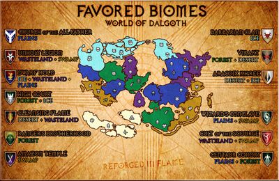 Charters possess one or more types of terrain which are considered 'favored'. Lore characters belonging to a Guild possessing a Tree of Life planted within favored terrain receive several statistical bonuses while adventuring within that territory. For example, a Human Ranger belonging to a Ranger's Brotherhood guild which owns a city in the Borderlands forest territory of Dalgoth Marches would receive the following while in that territory, but not while in the desert territory of Ketharuun: