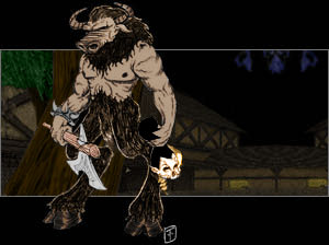 The Clans went their own ways, each with a long and glorious litany. Many are the names of our chieftains, our hunters, our warriors. We will sing their names later. We found new enemies to fight, for the Icelands were far from empty. Soon the Minotaur met the Giants and the Red-Hairs, those Human ten-toes that the Pale Ones never enslaved. They sought to drive us from our new home, but we were too strong. Many feuds did we fight with the Red-Hairs, and even the Giants learned to fear our strength. Food we took from them, and women, and lands, and we made feasts of their very flesh. Some of our kind, bred to shatter stones in the mines of the Pale Ones, dug deep into the mountains for ore. There we met the Stone Men, the Dwarves, and we crushed them. For a thousand years we knew the Time of Clans. It was a glorious time for our people, for we grew mighty in our freedom, and all who lived in the North lived in fear of us.